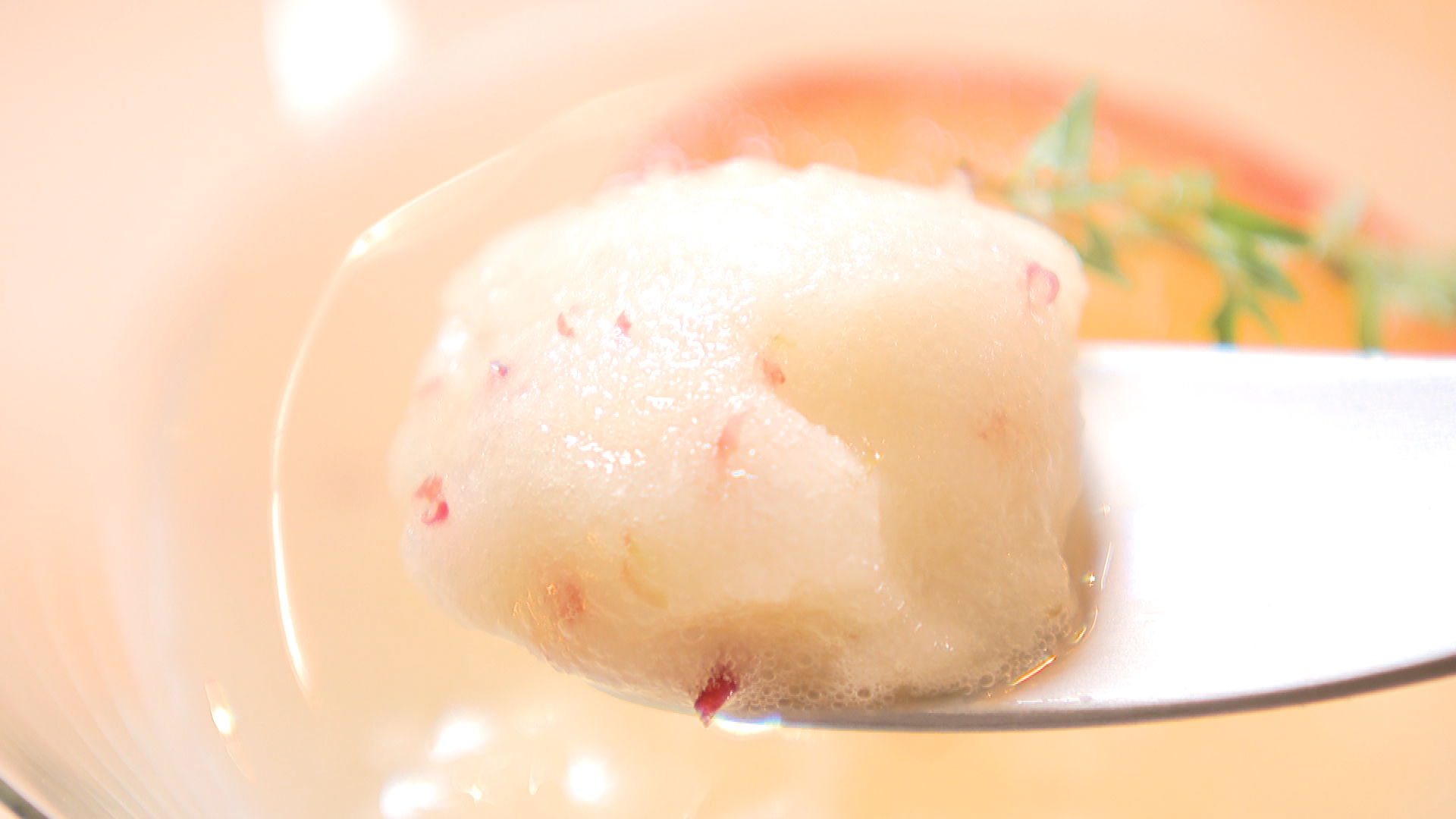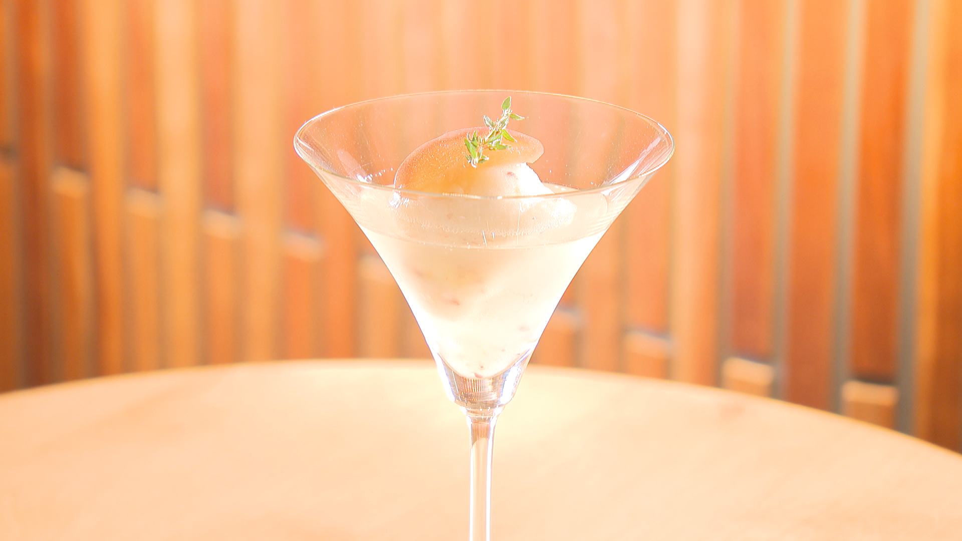 もう一つの注目が「紅玉りんごのソルベと白ワインのジェラートカクテル」。