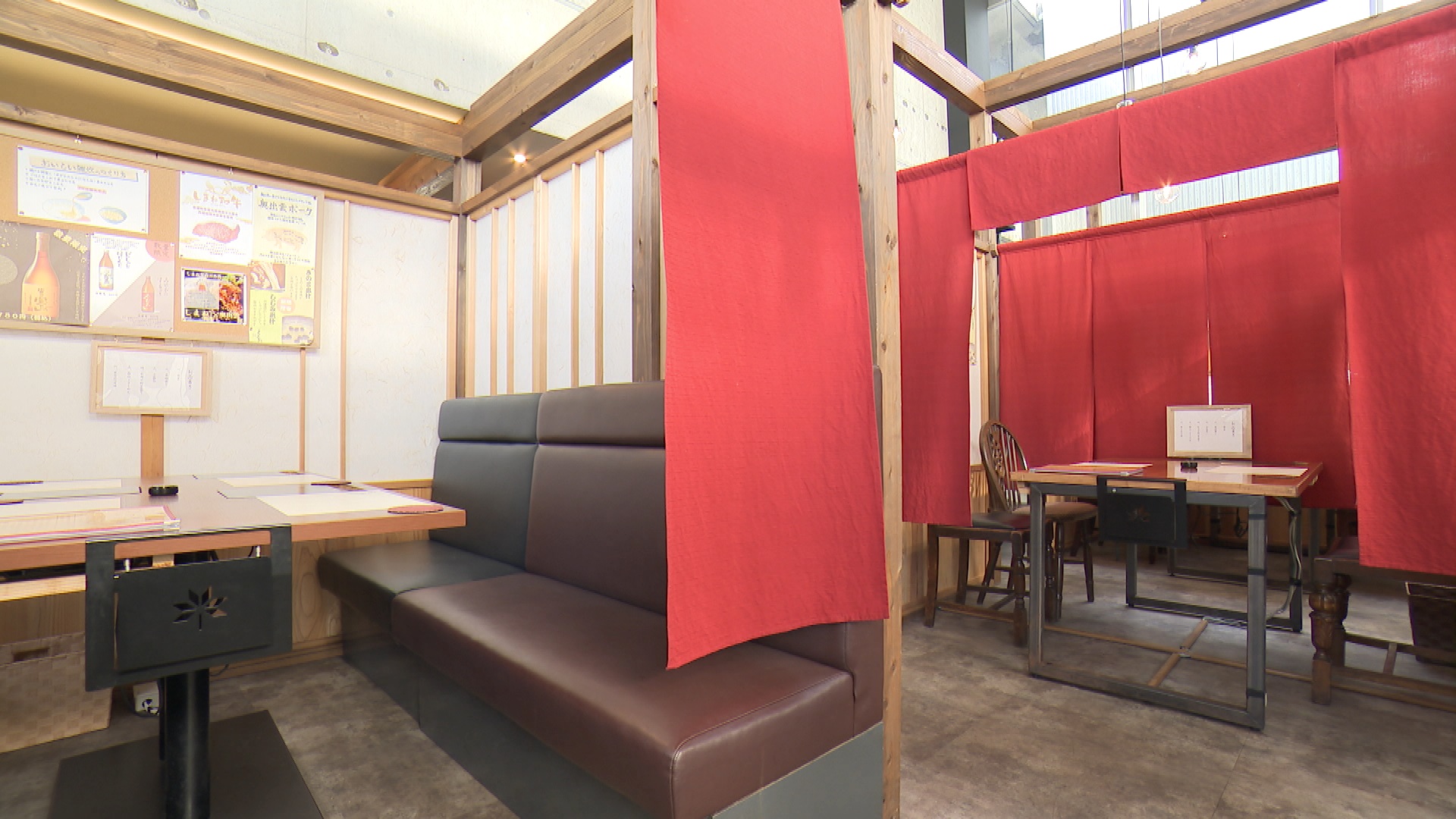 店内は落ち着いた和モダンな雰囲気で、壁面のガラス張りが開放的な空間を演出しています。全室が半個室となっており、個人での利用から宴会まで、用途に合わせた自分たちだけの空間で食事を楽しめるのが魅力です。